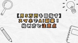 AIスキル 【月5万円を目指す】スマホでAI副業! 始め方と注意点 AI副業をスマホで始めたい初心者向けに、SNS投稿、文字起こし、動画編集、LINEスタンプなど始めやすい仕事を比較。安全に続けるコツ、怪しい案件の見分け方、税金の基本まで解説し、AI副業 スマホで無理なく収益化する現実的な手順がわかります。 2026.04.02 AIスキルスキルアップ