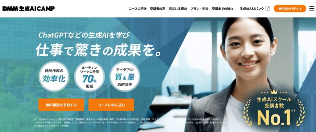 こうしたスキルを体系的に学べる場として注目されているのが、DMM 生成AI CAMPです。